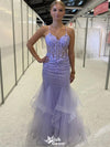 Sexy Purple Mermaid Spaghetti Strap Lace Long Sleeveless Long Party Prom Dresses,Evening Dress Online, WGP740