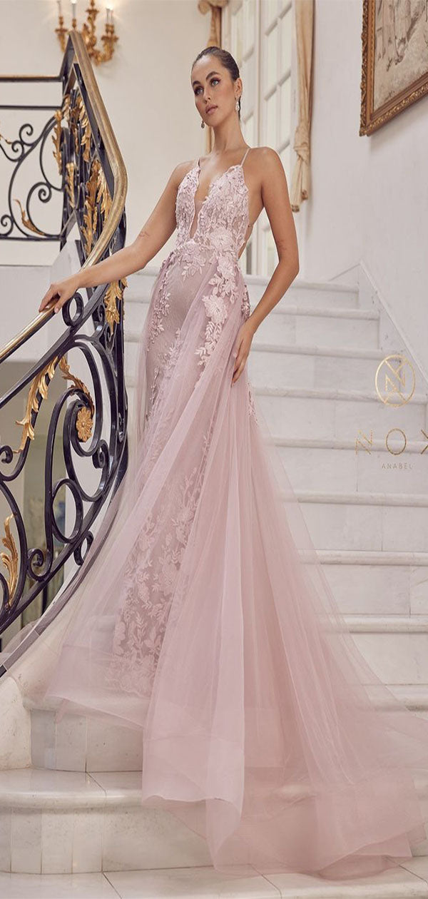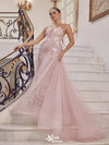 Sexy Pink Mermaid V Neck Halter Appliques Lace Up Long Formal Prom Gowns,Evening Dresses,WGP359