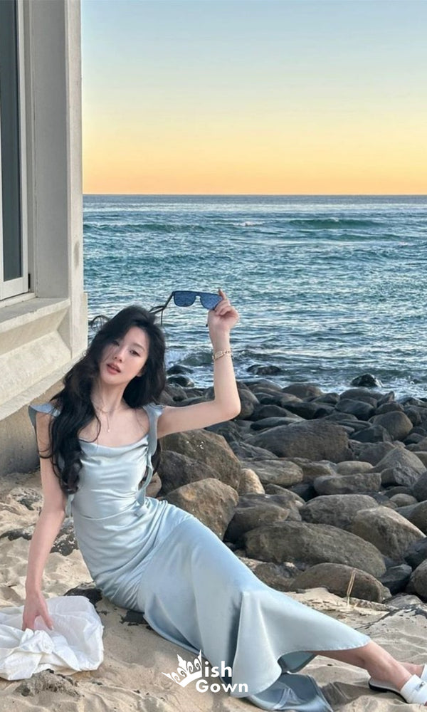Stylish Blue Simple Sheath Long Party Dress Prom Dresses,WGP999