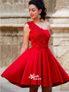Red Satin Appliques One Shoulder Knee-length Graduation Homecoming Prom Cocktail Dress, BD0060