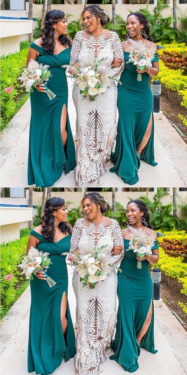Sexy Mermaid Sleeveless Off Shoulder Side Slit Maxi Long Bridesmaid Dresses, WGM165