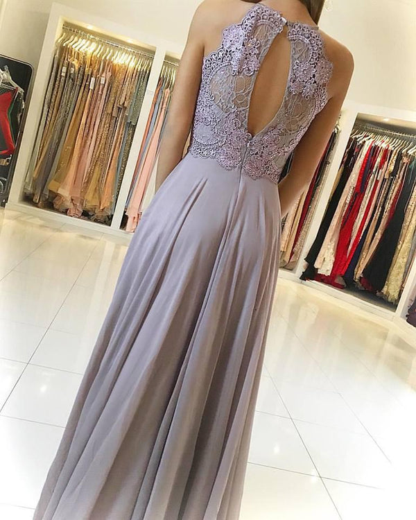 Simple Cheap Chiffon Lace Top Formal A Line Long Prom Dresses, WG773