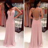 Simple Elegant Junior See Through Back Deep V Neck Pink Cheap Long Pro