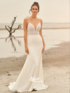 Ivory Lace Top Spaghetti Strap Sweetheart Mermaid Soft Satin Wedding Guset Long Prom Dress, WGP105