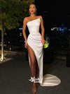 Modern Smple White Strapless High Split Satin Evening Sexy Long Prom Dress, WGP091