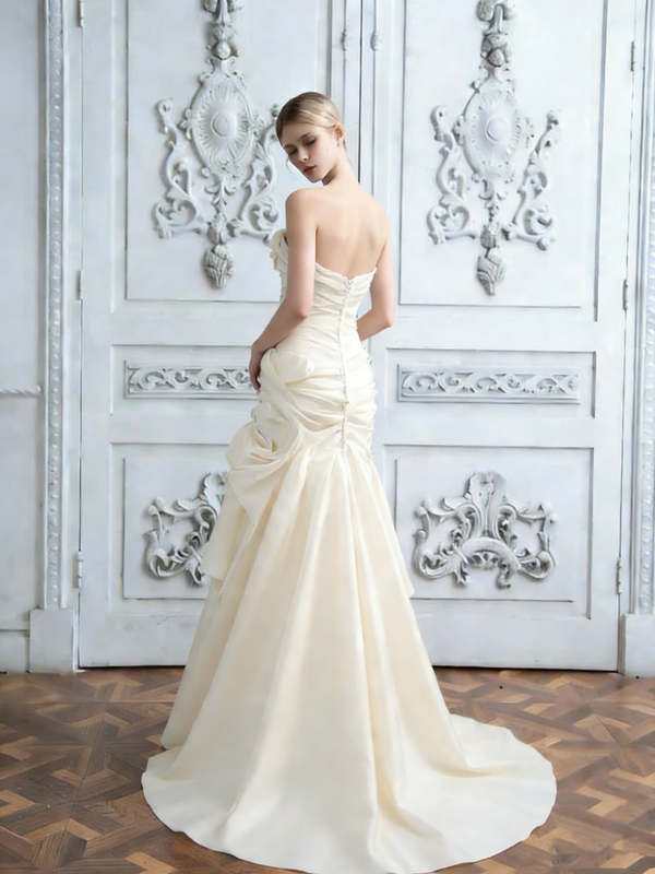 Classy Ruched Satin Wedding Prom Gown Strapless Sweetheart Neckline Mermaid Silhouette,WDH188