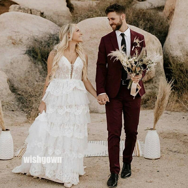 Elegant V-neck Princess Long Wedding Dress WDH055