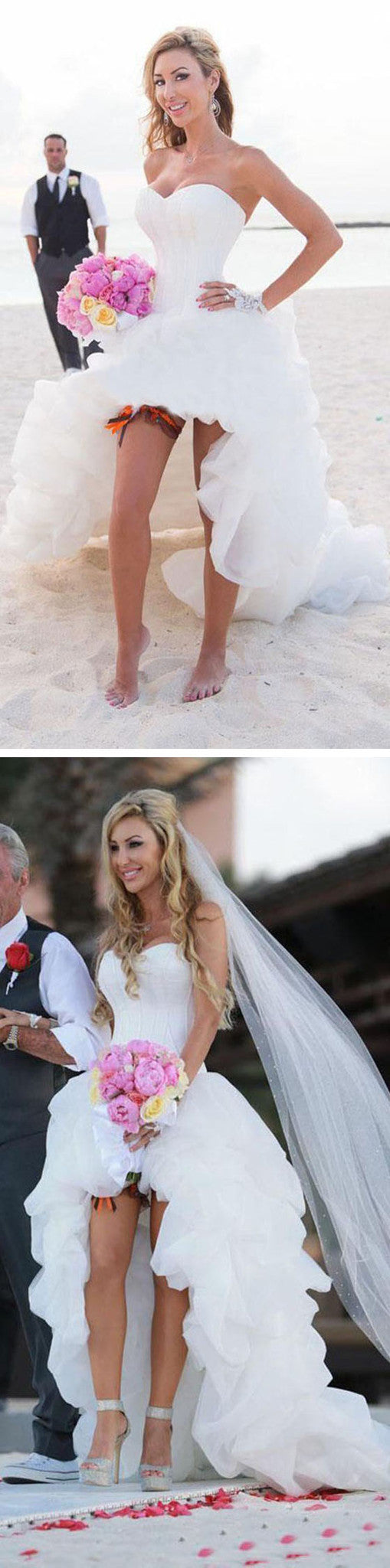 Hi-Low Simple Corset Sweetheart Chiffon Beach Wedding Dresses, Cheap Sexy Bridal Gown, WD0008