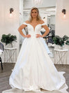 Simple Off Shoulder V Neck With Train Popular Bridal Long Wedding Dresses, WDH117