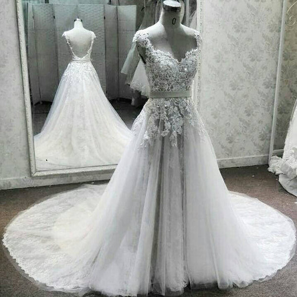 Sweetheart Gorgeous Open Back Applique Long Wedding Party Dresses, WG601