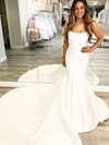 Simple Mermaid Strapless Sleeveless With Train Popular Bridal Long Wedding Dresses, WDH115