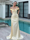 Elegant Yellow Floral Off-Shoulder Mermaid Long Prom Dress Ideas, Even