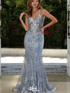 Shiny Blue Spahetti Strap Mermaid Long Prom Dress Ideas, Evening Party Dresses ,WGP1599