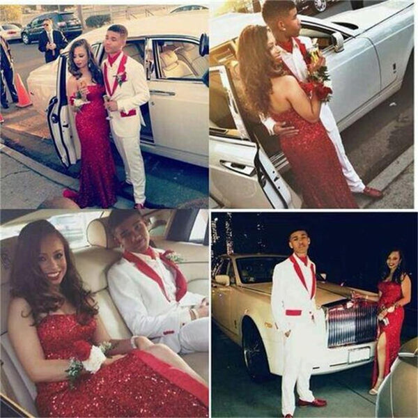 Strapless Sequined Red Sparkly Mermaid Evening Pageant Long New Style Prom Dresses, PD0093