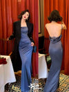 Stylish Blue Spaghetti Straps Mermaid Long Prom Dresses ,WGP1083