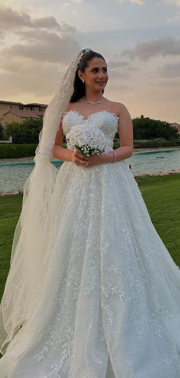 Elegant White Sweetheart Sleeveless A-Line Long Wedding Dresses With S