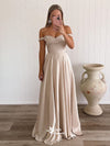 Champagne Off Shoulder Sweetheart Soft Satin Pleats A-line Evening Gowns Prom Dresses, WGP201