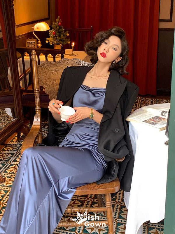 Stylish Blue Spaghetti Straps Mermaid Long Prom Dresses ,WGP1083
