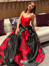 Unique Red A-Line Strapless Rose Popular Long Evening Dresses, Formal
