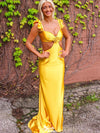 Unique Spaghetti Strap Mermaid Yellow Long Prom Dress Ideas, Evening Party Dresses,WGP1191