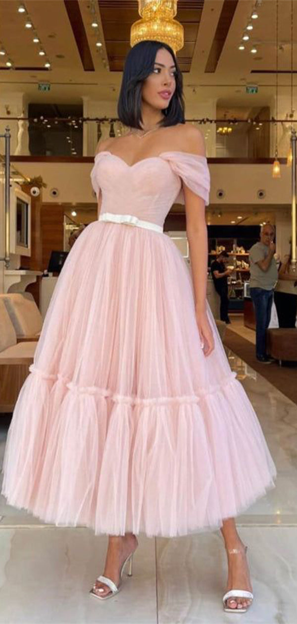 Elegant Pink A-Line Off-shoulder Popular Long Evening Dresses, Formal Dresses, Birthday Party, WGP566