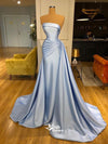 Chic Blue Pleats Soft Satin Strapless A-line Long Evening Gown Prom Dresses, PG1166