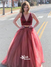 Popular V Neck Open Back Two Pieces Cheap Long Evening Prom Dresses, WG1021