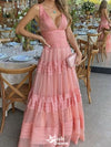 Elegant Pink V-Neck A-Line Long Prom Dress Ideas, Evening Party Dresses,WGP1849