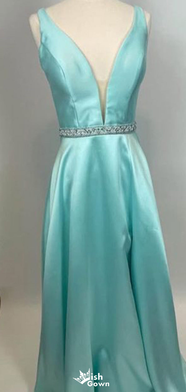 Elegant V-neck A-line Long Prom Dress Ideas, Evening Party Dresses,WGP1797