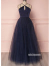 Navy-blue Spaghetti Straps Tulle Long Prom Dresses PG1233