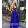 Open Back Sexy Royal Blue Beaded Unique Cheap Long Prom Dresses, WG1089