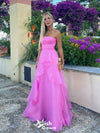 Popular Pink A-line Strapless Maxi Long Party Prom Dresses,Evening Dre