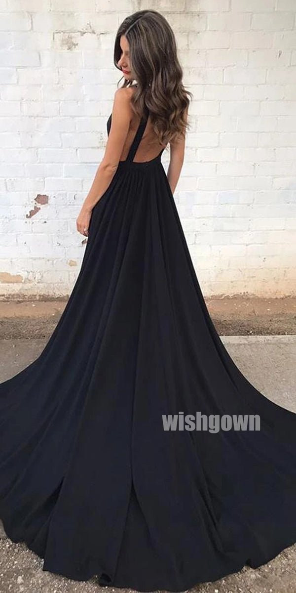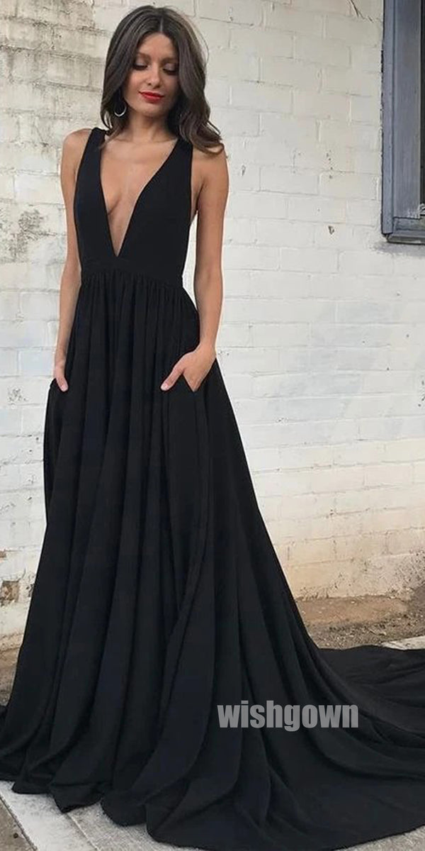 Sexy Deep V-neck Black Long Prom Dresses PG1191