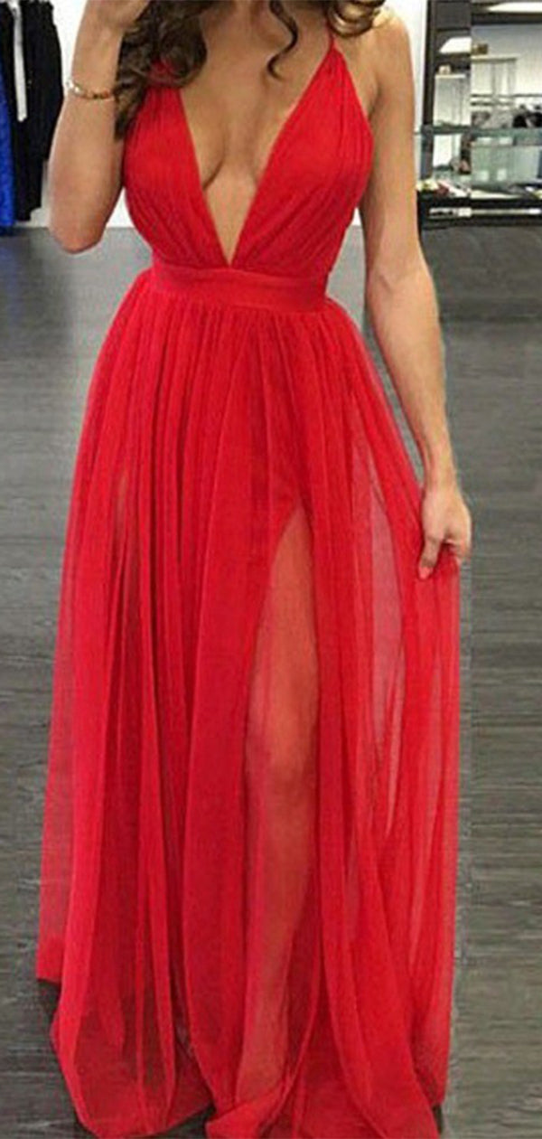 Sexy Red V-Neck Mermaid A-Line Long Sleeveless Long Party Prom Dresses,Evening Dress Online, WGP774