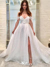 Elegant White Off Shoulder A-Line Side Slit Party Prom Dresses,Ev