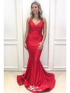 Sexy Red Mermaid Spaghetti Straps V Neck Long Prom Dresses PG1161