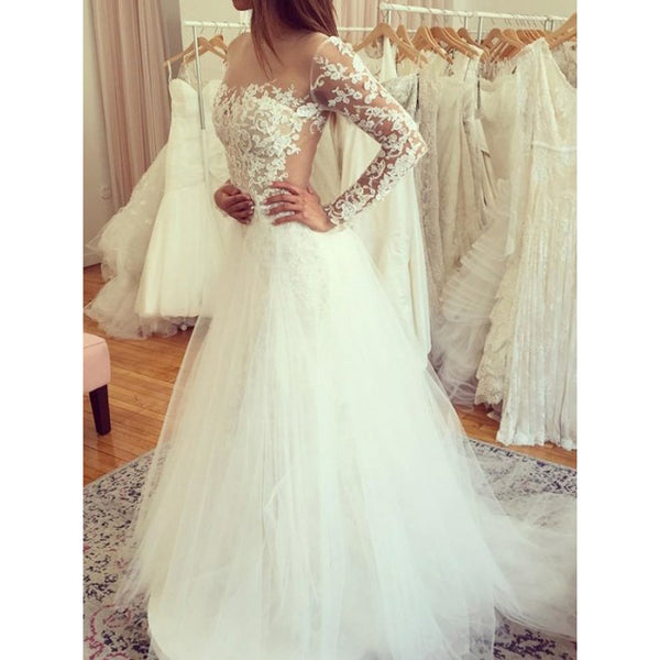 Lace Long Sleeves Formal Cheap Bridal Long Wedding Dresses, BW157