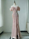 Sparkly Pink Off-Shoulder Mermaid Side Slit Long Prom Dress Ideas, Evening Party Dresses,WGP1753