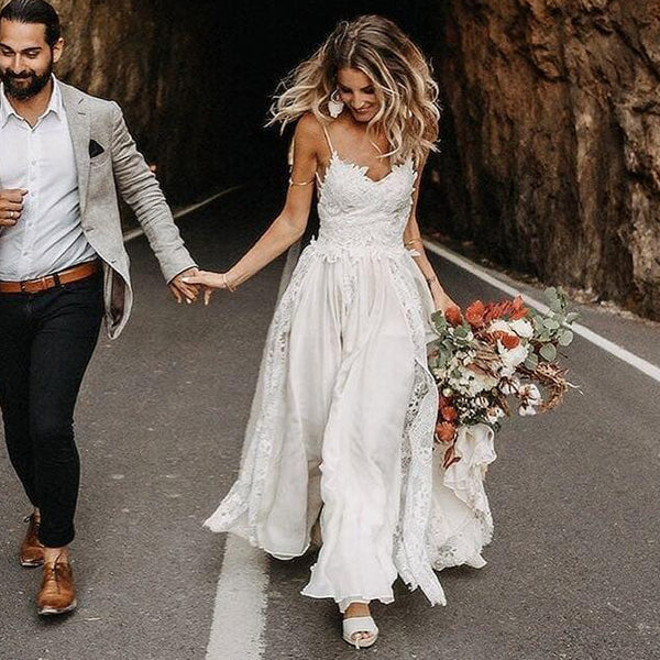 Spaghetti Strap Lace A Line Long Bridal Wedding Dresses, STZ317