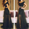 Online Junior Black Lace Off Shoulder Tulle Long Two Pieces Party Evening Prom Dresses, PD0081