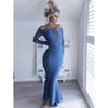 Affordable Long Sleeves Lace Off the Shoulder Mermaid Long Prom Dress,