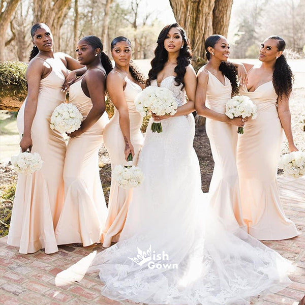 Simple Spaghetti Strap Mermaid Soft Satin Floor Length Bridesmaid Dres
