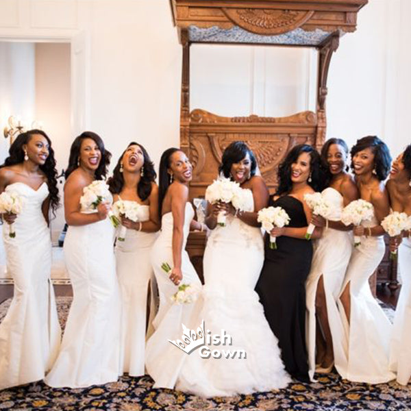 Ivory Sweetheart Strapless Side Split Mermaid Long Bridesmaid Dresses, WGM016