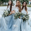 Two Pieces Ivory Lace Short Sleeve A-line Blue Tulle Long Bridesmaid Prom Dresses, WGM024