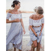 2 Pieces Lace Off the Shoulder Short Sleeves Tea Length Wedding Bridesmaid Dresses, WG436