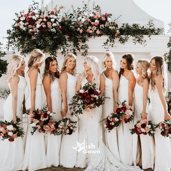 Asymmetric One Shoulder Soft Satin Mermaid Wedding Guest Bridesmaid Dresses, WGM055
