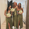 Elegant Green Mermaid Side Slit Spaghetti Strap Sleeveless Wedding Guest Bridesmaid Dresses,WGM357