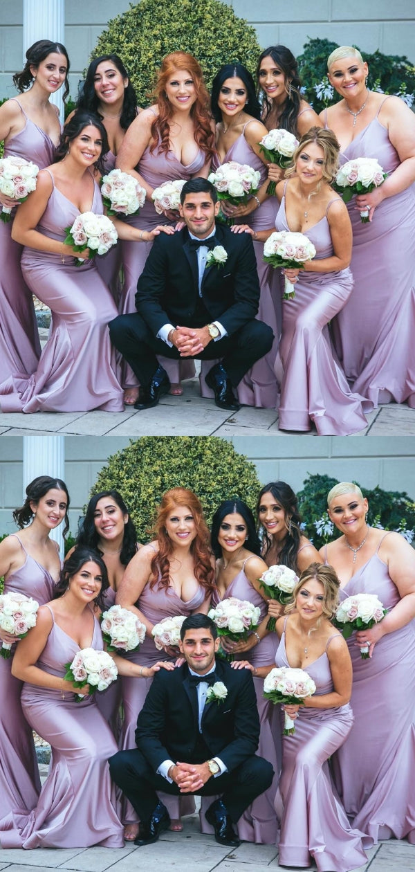 Elegant Purple Mermaid Spaghetti Straps Sleeveless Wedding Guest Bridesmaid Dresses,WGM350