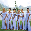 Elegant Light Purple Mermaid Spaghetti Straps Off Shoulder Side Slit Popular Cheap Maxi Long Wedding Guest Bridesmaid Dresses,WGM294