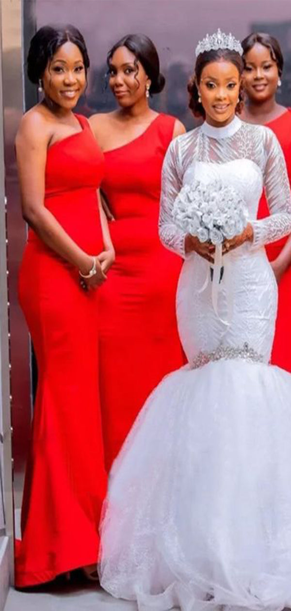 Elegant Mermaid One Shoulder Popular Cheap Maxi Long Wedding Guest Bridesmaid Dresses,WGM264
